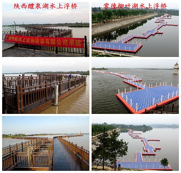 廣州中航水上浮橋經典案例如湖南常德柳葉湖的景觀浮橋、陜西醴泉湖水上浮橋等堪稱水上景觀浮橋的典范。